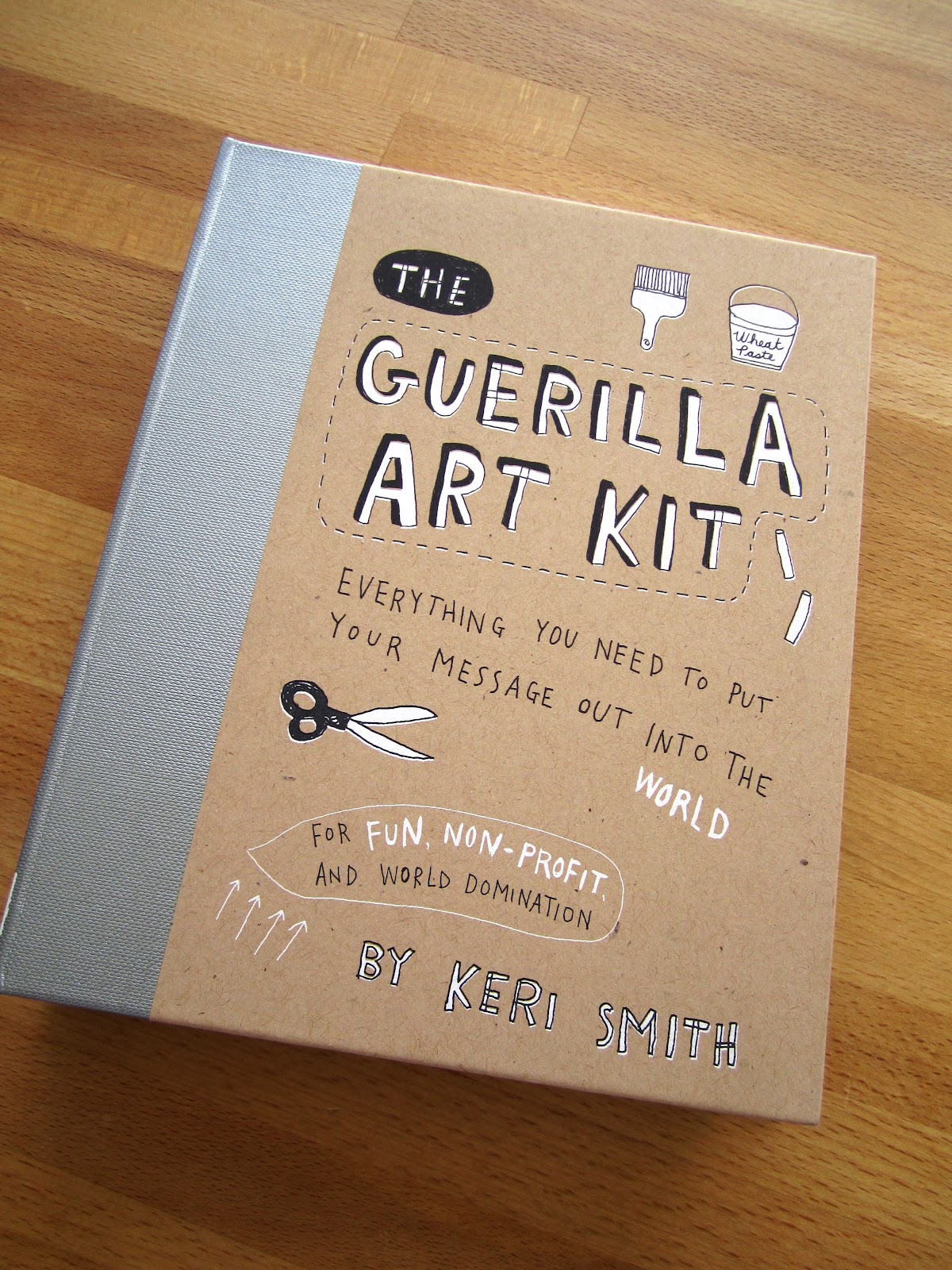 Den anden bog hedder “The guerilla art kit” og er skrevet af Keri Smith. Det er mest af alt en humoristisk introduktion til streetart, men altså på den fede gør-det-selv måde! Og forfatteren fralægger sig da også ansvaret for læserens efterfølgende handlinger 🙂
