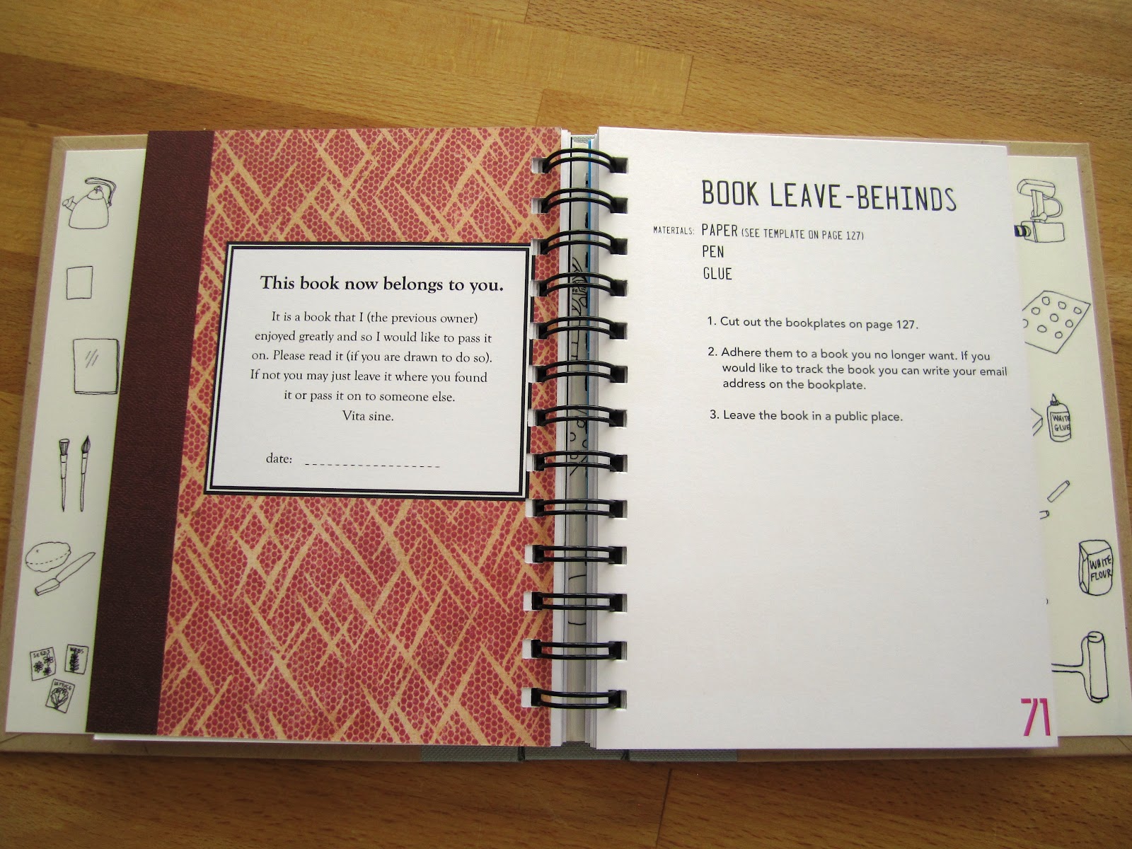 En af de knap så farlige ideer fra bogen er “book leave-behinds”, som kort fortalt går ud på, at du efterlader en af dine yndlingsbøger på et offentligt sted, så andre kan få glæde af den. Forfatteren foreslår følgende tekst, som kan skrives ind i bogen: “This book now belongs to you. It is a book that I (the previous owner) enjoyed greatly and so I would like to pass it on. Please read it (if you are drawn to do so). If not you may just leave it where you found it or pass it on to someone else.”